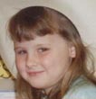 Shannon Desiree Volz, 10 yrs. blue eyes, blonde hair, wearing tan shorts and a purple shirt.